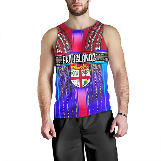 Fiji Tank Top Fiji Map With Coat Of Arms Polynesian Tatau Half Black