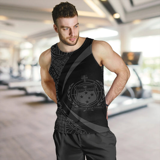Samoa Tank Top Coat Of Arm Lauhala Gray Circle