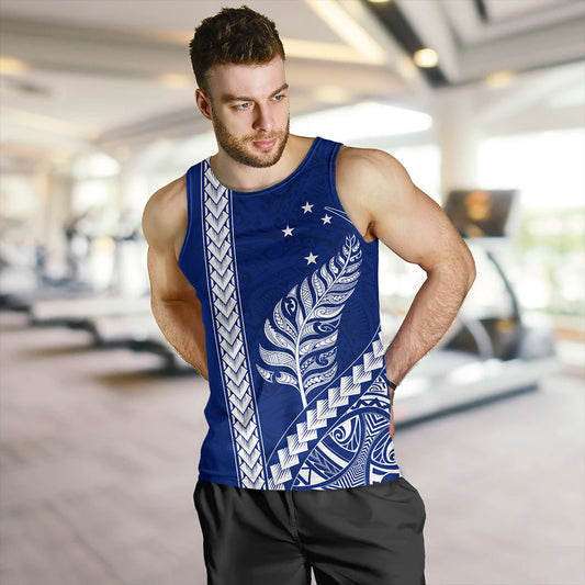 New Zealand Tank Top Maori Tribal Silver Fern With Star Tattoo Style Blue