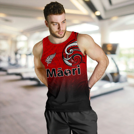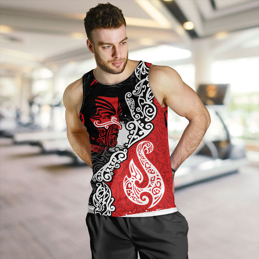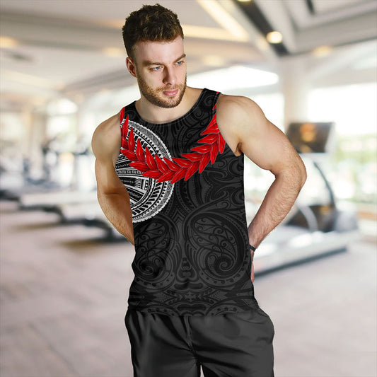 New Zealand Tank Top Maori Tribal Silver Fern Tattoo Style Red
