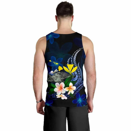 Polynesian Hawaii Men Tank Top - Turtle With Plumeria Flowers