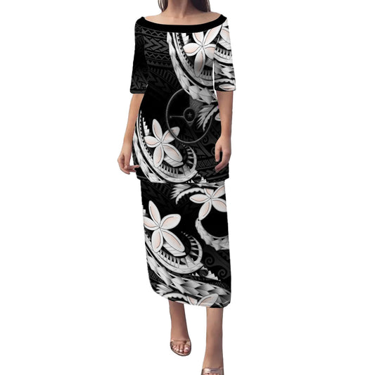 Yap State Combo Puletasi And Shirt Polynesian Patterns Plumeria Flowers Special Style
