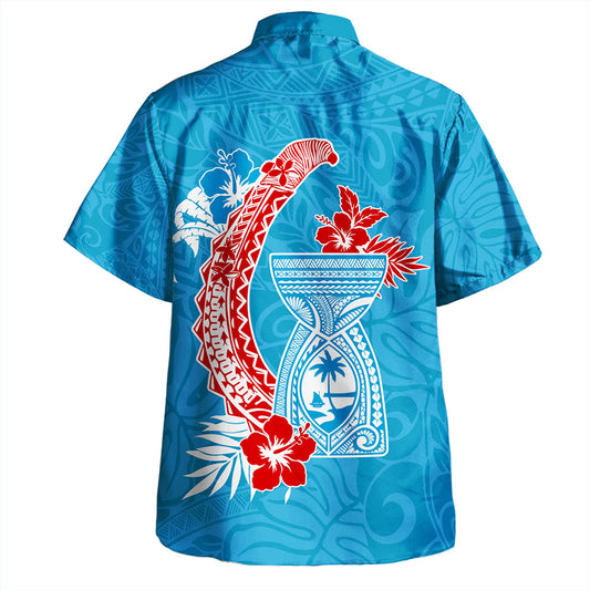 Guam Hawaiian Shirt Hook With Latte Stone Hibiscus Tropical Blue