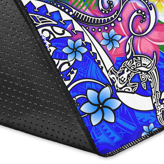 Chuuk Custom Personalised Area Rug - Turtle Plumeria (Blue)