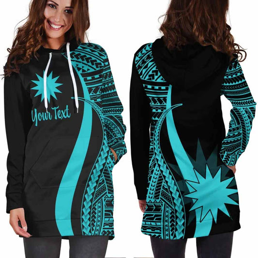 Nauru Custom Personalised Hoodie Dress - Turquoise Polynesian Tentacle Pattern