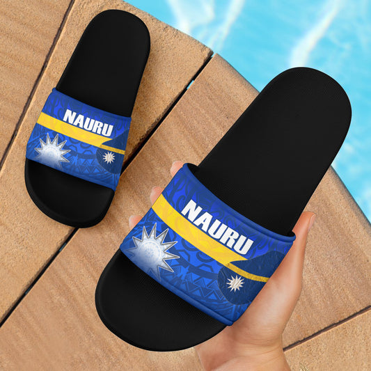 Nauru Flag Color With Traditional Patterns Slide Sandals
