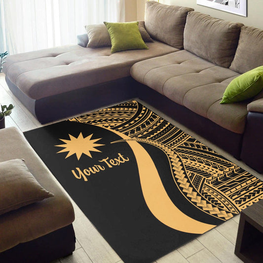 Nauru Custom Personalised Area Rug - Gold Polynesian Tentacle Tribal Pattern