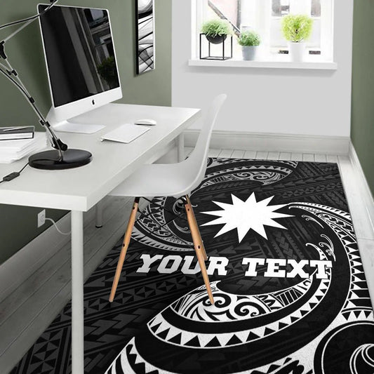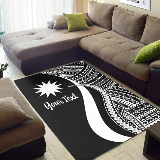 Nauru Polynesian Custom Personalised Area Rug - White Tribal Wave