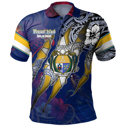 Nauru Polo Shirt - Polynesian Pride with Hibicus Flower Tribal Pattern