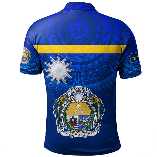 Nauru Polynesian Polo Shirt - Nauru Coat Of Arms Polynesian Culture Personalized Polo Shirt
