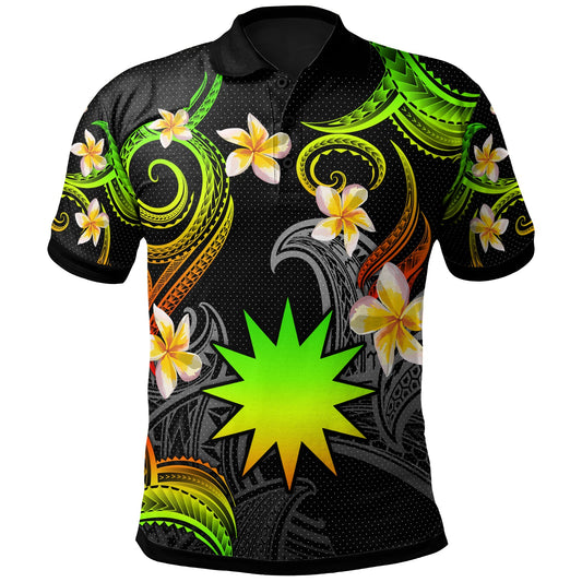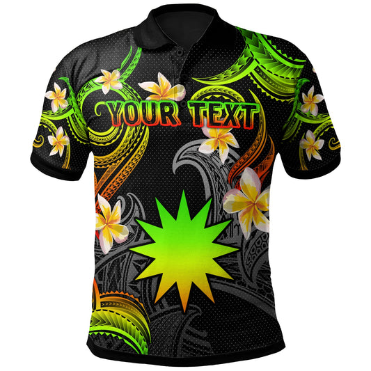Nauru Polo Shirt - Custom Personalised Polynesian Waves with Plumeria Flowers (Reggae)
