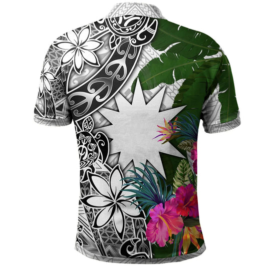 Nauru Polo Shirt White - Turtle Plumeria Banana Leaf