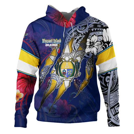Nauru Hoodie Custom Nauruan Blood Inside Me Polynesian Sleeve Tattoo Tropical Blue