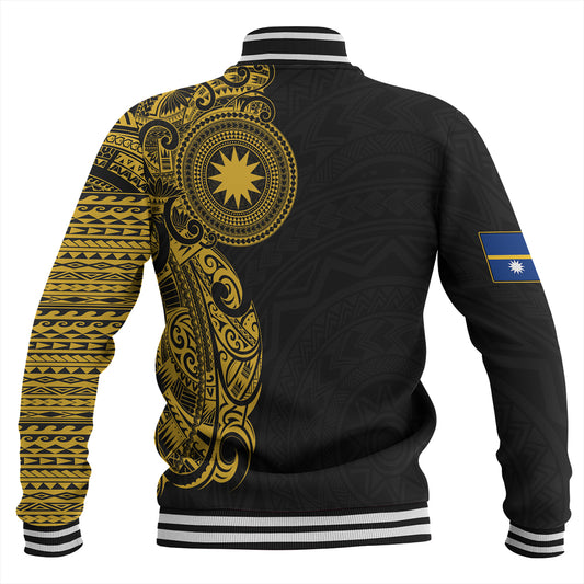 Nauru Baseball Jacket Custom Polynesian Half Sleeve Gold Tattoo With Seal Black