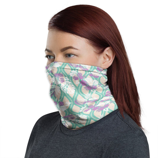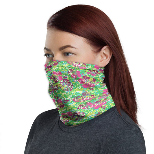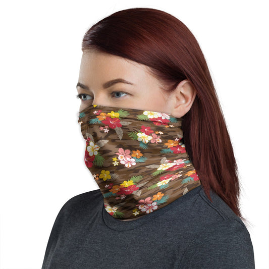 Polynesian Neck Gaiter - Camo Poly Patterns Hibiscus 06