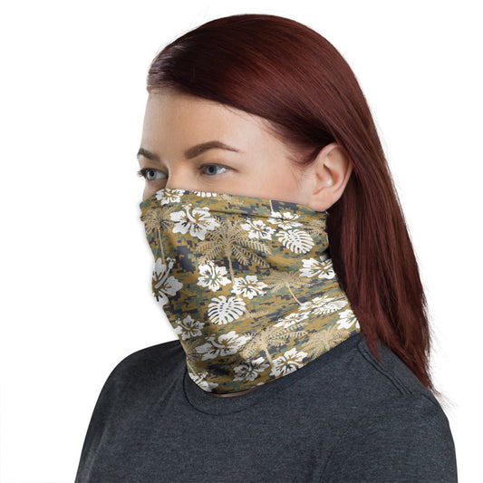 Polynesian Neck Gaiter - Camo Poly Patterns Hibiscus 18