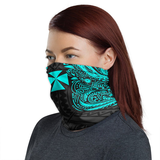 Wallis And Futuna Neck Gaiter - Floral Tattoo Blue
