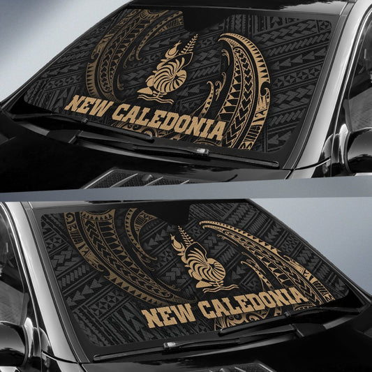 Polynesian New Caledonia Custom Personalised Sun Shades - Gold Tribal Wave