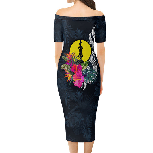 New Caledonia Woman Off Shoulder Long Dress - Custom New Caledonia National Emblem With Cagou And Hibiscus Polynesian