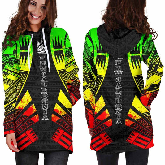 New Caledonia Custom Personalised Hoodie Dress - Reggae Polynesian Tentacle Pattern