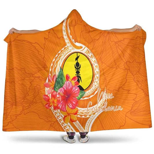 New Caledonia Polynesian Custom Personalised Hooded Blanket - Orange Floral With Seal