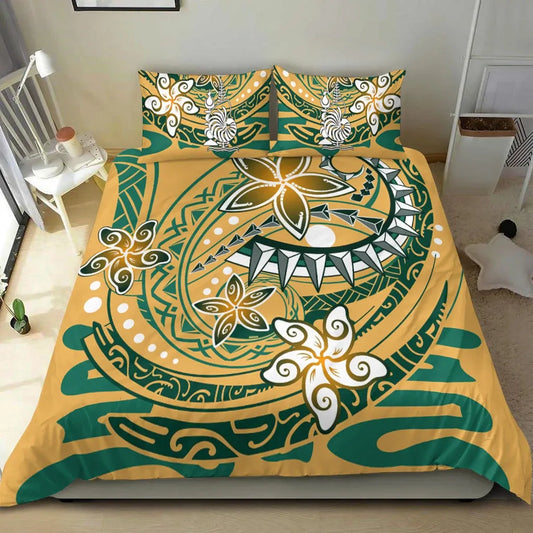 New Caledonia Polynesian Custom Personalised Bedding Set - Plumeria Tribal