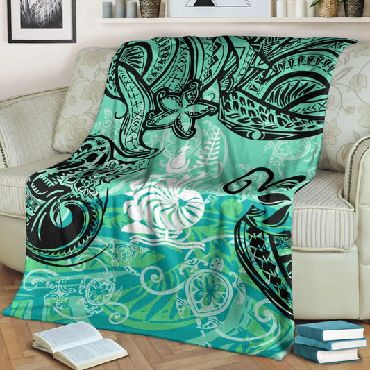New Caledonia Polynesian Custom Personalised Blanket - Plumeria With Blue Ocean