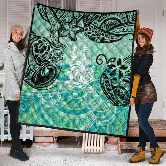New Caledonia Polynesian Premium Quilt - Vintage Floral Pattern Green Color