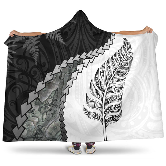New Zealand Hooded Blanket Silver Fern Maori Pattern