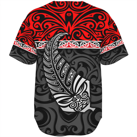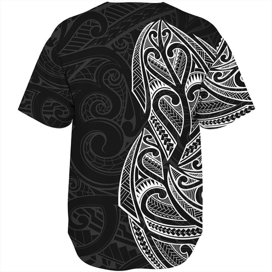 New Zealand Baseball Shirt Maori Pattern Silver Fern Tattoo