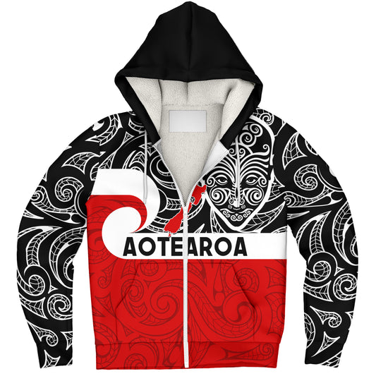 New Zealand Sherpa Hoodie Aotearoa Maori Haka Face