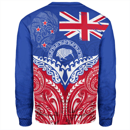 New Zealand Sweatshirt Flag With Kiwi And Maori Pattern