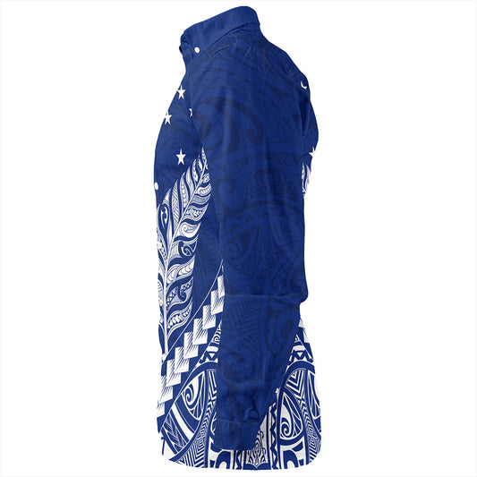 New Zealand Long Sleeve Shirt Maori Tribal Silver Fern With Star Tattoo Style Blue