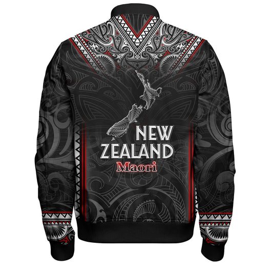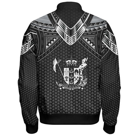 New Zealand Bomber Jacket Maori Patterns With Map Silver Fern