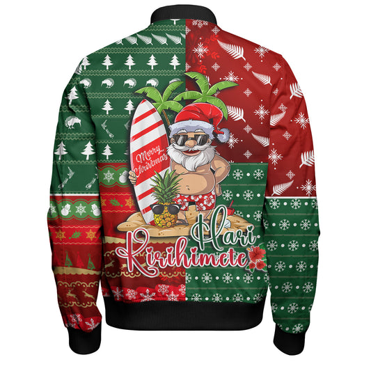 New Zealand Bomber Jacket Hari Kirihimete Rugby Santa Style