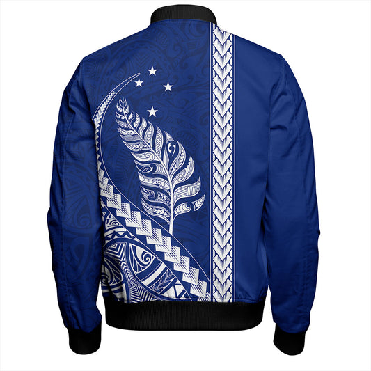 New Zealand Bomber Jacket Maori Tribal Silver Fern With Star Tattoo Style Blue