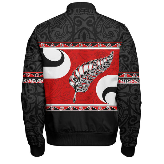 New Zealand Custom Personalised Bomber Jacket Silver Fern Maori Pattern