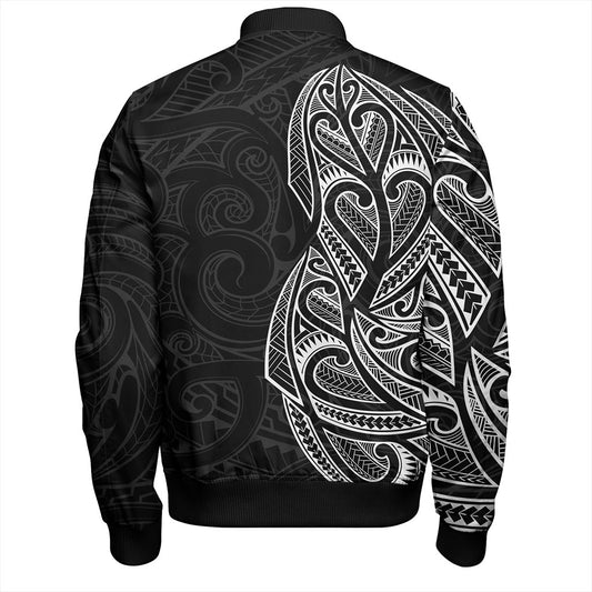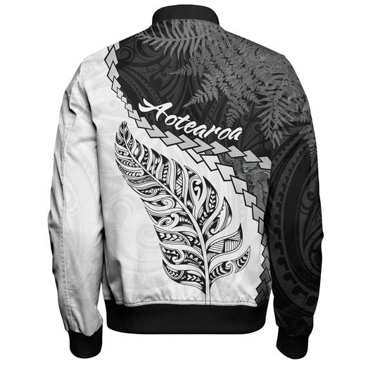 New Zealand Bomber Jacket Maori Pattern Aotearoa Silver Fern Tattoo