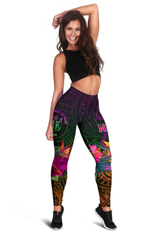 Niue Polynesian Legging - Coat Of Arm With Hibiscus