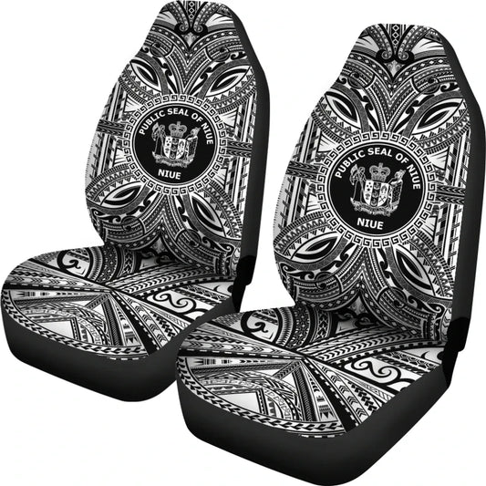 Niue Car Seat Cover - Niue Coat Of Arms Polynesian White Black