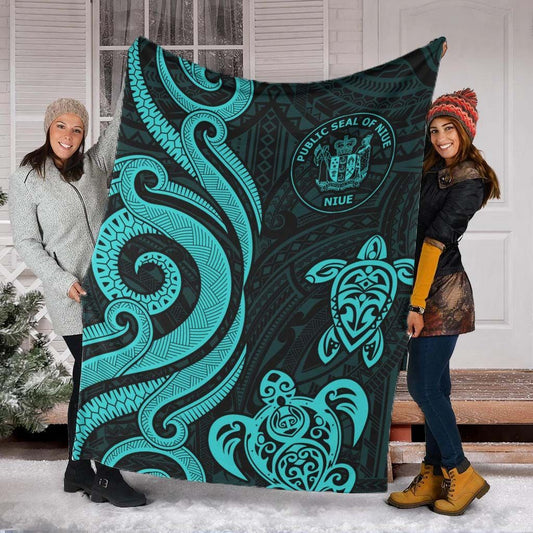 Niue Polynesian Premium Blanket - Blue Turtle Couple