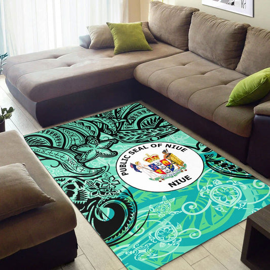 Niue Custom Personalised Area Rug - Reggae Polynesian Tentacle Tribal Pattern