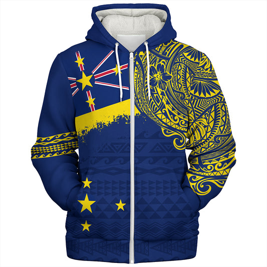 Niue Sherpa Hoodie Flag And Coat Of Arms
