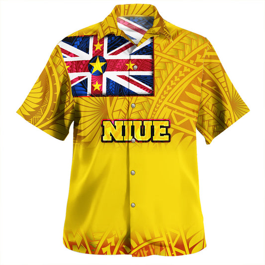 Niue Hawaiian Shirt Polynesian Flag With Coat Of Arms
