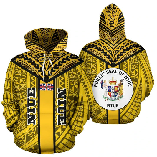 Niue Hoodie - Niue Flag Coat Of Arms Polynesian Tattoo