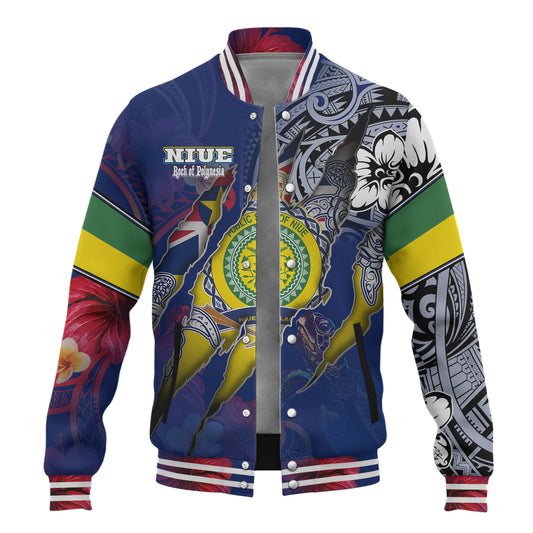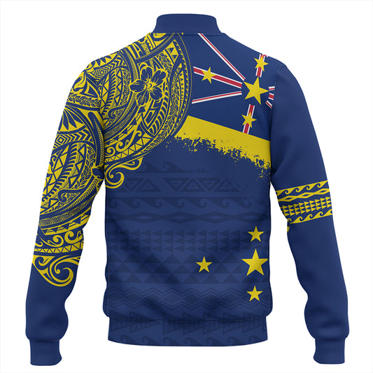 Niue Baseball Jacket Flag Color With Traditional Patterns