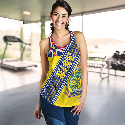 Niue Women Tank Polynesian Flag With Coat Of Arms