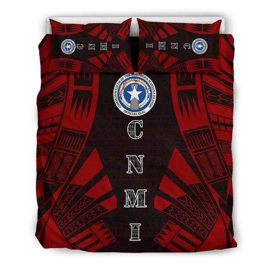 Polynesian Bedding Set - Northern Mariana Islands Duvet Cover Set Map Red White