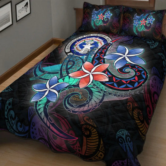 Northern Mariana Islands Quilt Bed Set - Fish With Plumeria Flowers Style