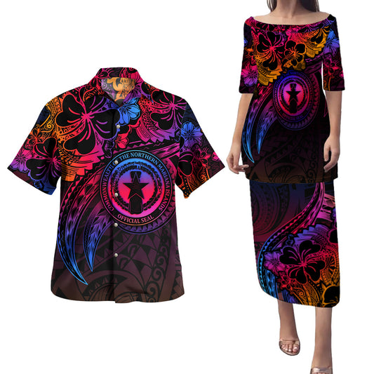 Northern Mariana Islands Combo Puletasi And Shirt Polynesian Patterns Plumeria Flowers Special Style